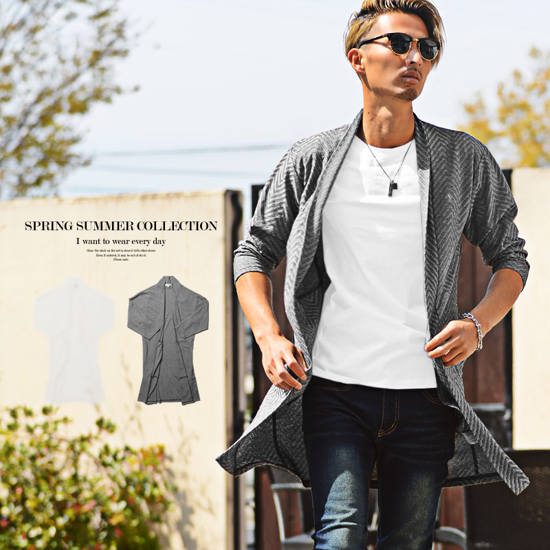 偉大な メンズ ストライプ 7分袖ショールガウン 男 かっこいい 服 送料無料 メンズ 男 ストライプジャガードロング丈7分袖ショールガウン コーディガン カーディガン 羽織り 白 黒 春夏 ロングシーズン トップス Savannah Osc Com